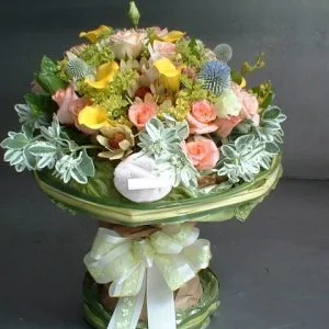 花材:虎頭蘭、萬代、玫瑰、桔梗、牡丹菊